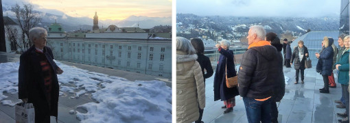 On February 12th Milijana Pavlovic showed a group of members around the new, modern, elegant Haus der Musik.3 Starting with the 5th floor library we visited rehearsal rooms, lecture halls, concert halls, offices and finally settled down among Milijana’s books to hear about her research work -- Musicology -- a word and its meaning having been previously unknown to most of us. This building, which from the outside, has to be got used to, amazed us once inside it.